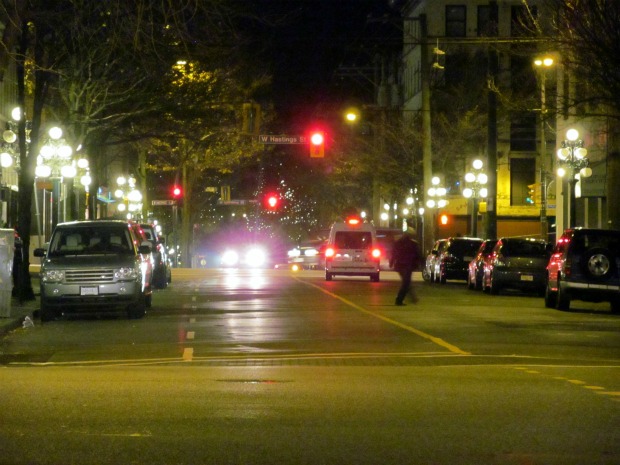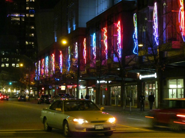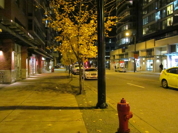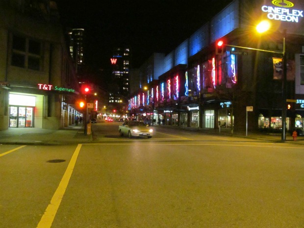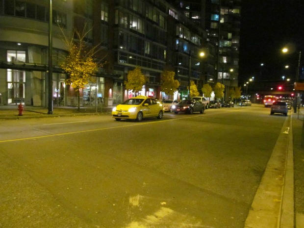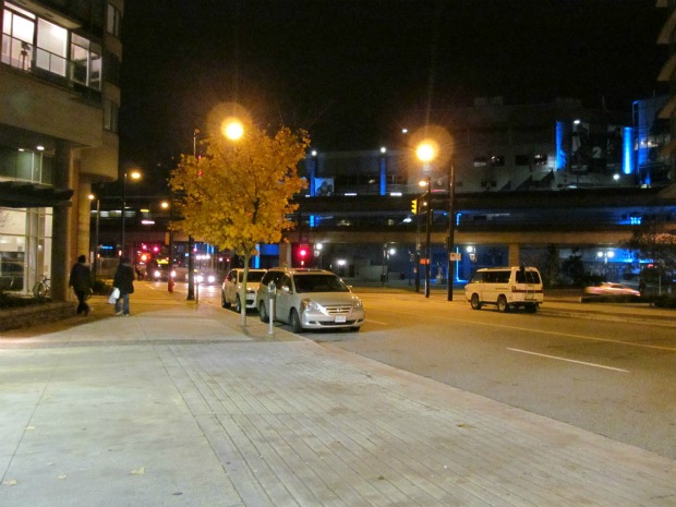 Выезд из нашего гаража. Слева видно Скай-трейн (жалко поезда не было)